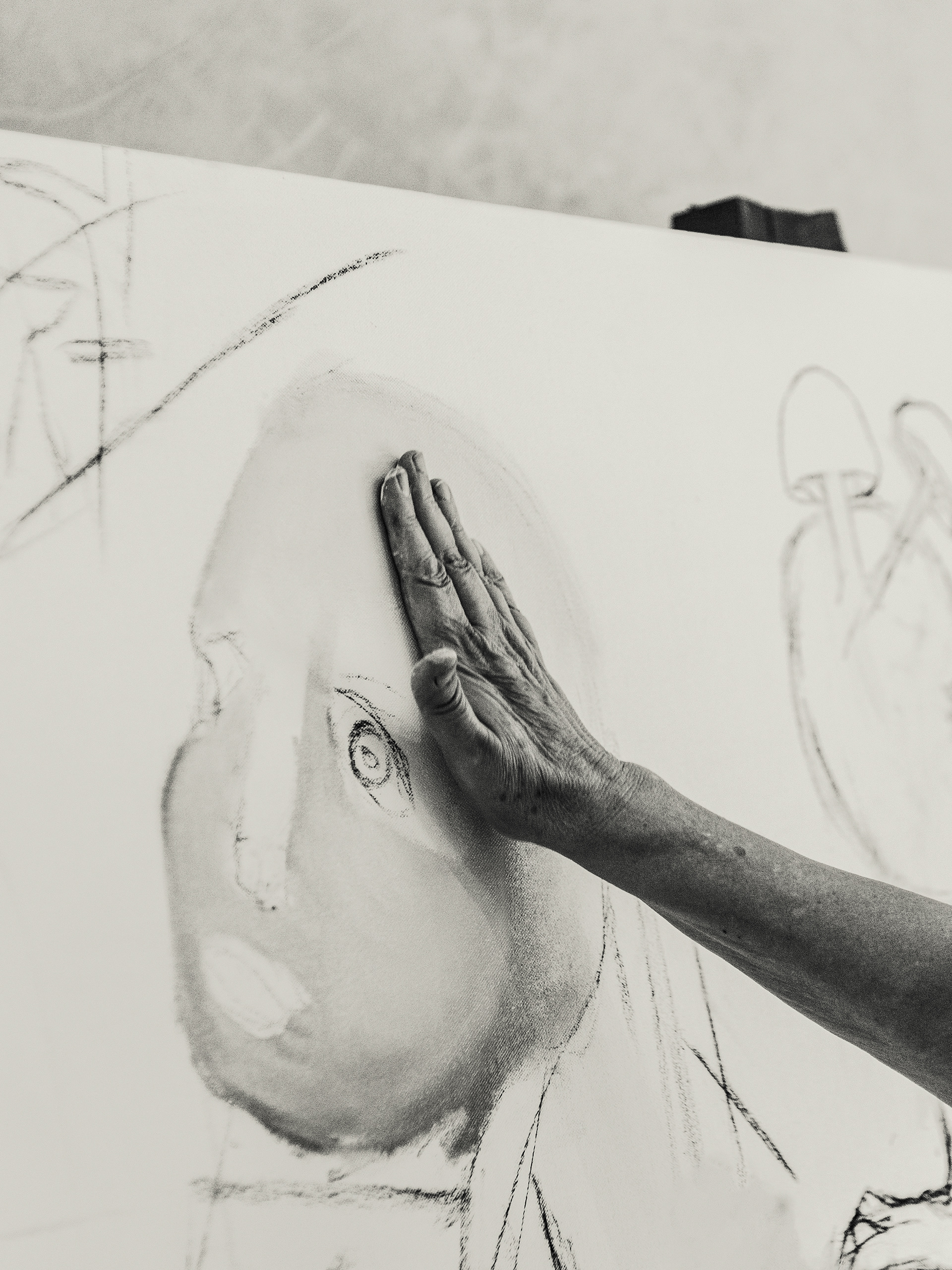 Aunque su trayectoria la llevó a exponer en diversos museos y galerías dentro y fuera del país, su presencia en el mundo digital es casi imperceptible; tan tenue como las huellas digitales de sus propias manos, que con los años se han ido borrando entre capas de pintura y thinner, mientras talla y deshace sus lienzos.